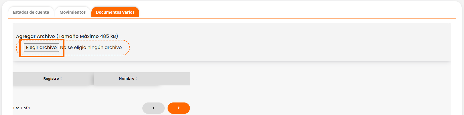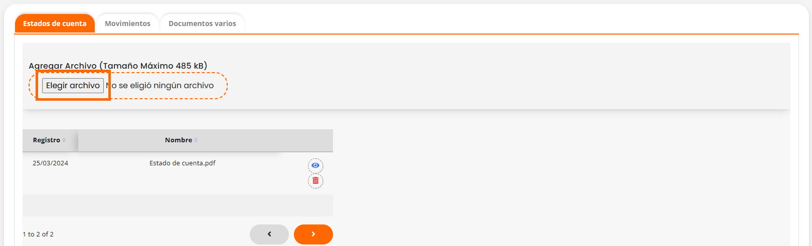 - En esta pestaña, tienes la opción de agregar estados de cuenta.