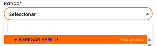 - Si el banco no aparece en la lista, puedes agregarlo haciendo click en "Agregar banco".