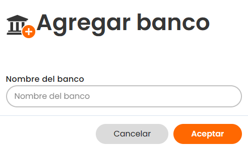 - Se abrirá una ventana donde podrás ingresar el nombre del banco y luego hacer clic en "Aceptar" para añadirlo a la lista de bancos disponibles.