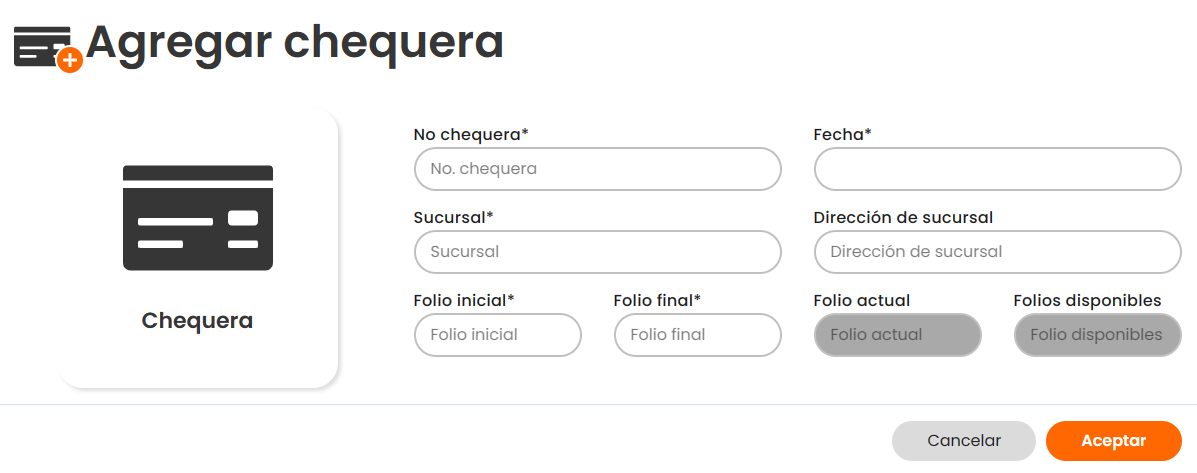 - “Sucursal”: Selecciona la sucursal a la que está asociada la chequera.
