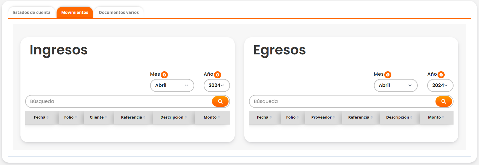 - En la segunda lista, denominada "Egresos", se mostrarán todos los movimientos de egreso que se han realizado en la cuenta.