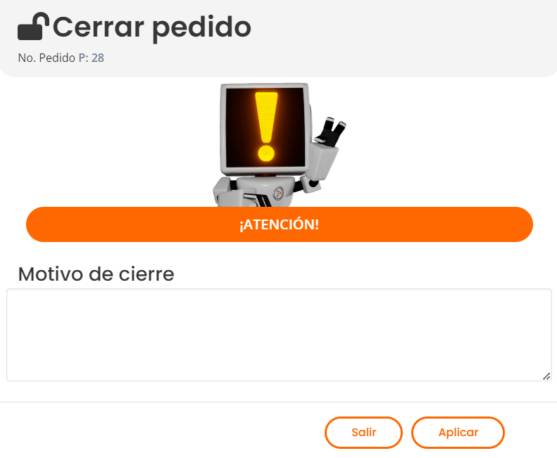Cerrar pedido.