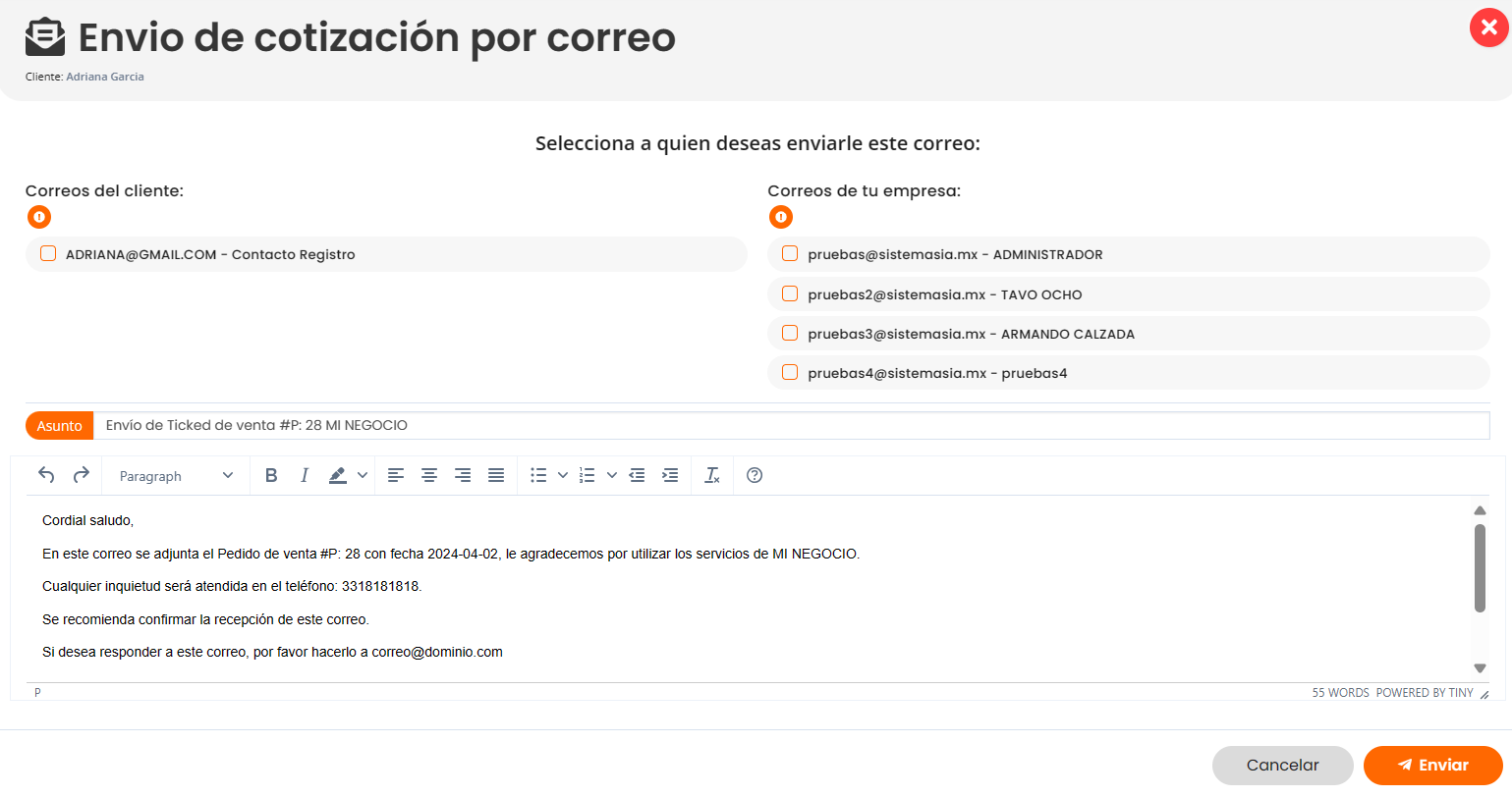 Enviar por correo.