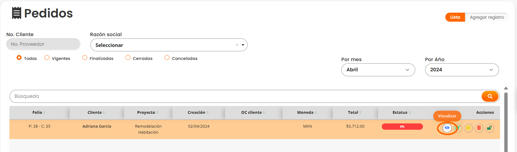 En la lista que muestra todos los pedidos, busca el pedido especifico al que deseas acceder a la vista previa. Puedes utilizar funciones de búsqueda o filtros para facilitar la ubicación del pedido deseado.