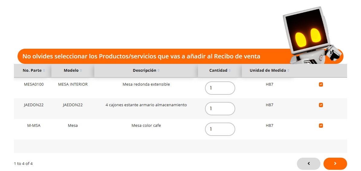 Generar recibo de venta.