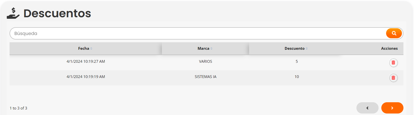 La seguiente sección es "Descuentos", se registrarán los descuentos asociados al prospecto.