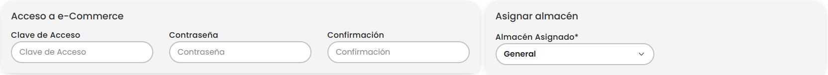 "Acceso a e-commerce" y "Asignar almacén".